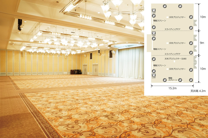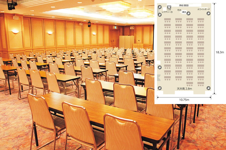2F Large Hall - Theater-style: 500 / School-style: 396 (3 per table) 264 (2 per table)