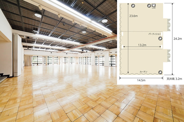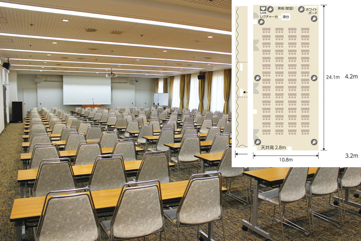 The facility is suited to meet a variety of needs, featuring an exhibition hall and large hall, as well as meeting rooms for groups of 16 - 180. It can also be used for social gatherings and parties.