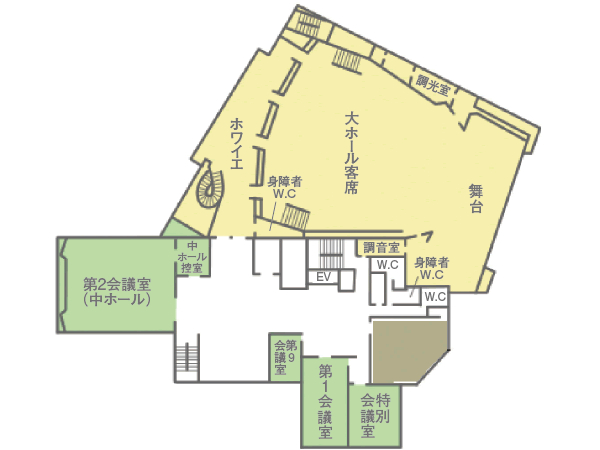 Conveniently located just a 15-minute walk from Himeji Station, this multi-purpose community facility is equipped with a large hall that accommodates 800 people, as well as multiple meeting rooms including Meeting Room 2 (Middle Hall) that accommodates 200 people.