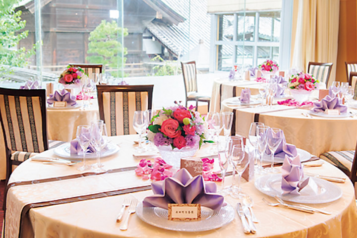 Harima-no-Kuni Sosha Shrine has a 1,400-year history. It enshrines the deities Itate-no-Okami and Hyozu-no-Okami. Every day, we look forward to serving you the seasonal blessings of Harima, a treasure trove of food prepared using authentic Japanese tastes and methods, served at our restaurant and as wedding dishes.