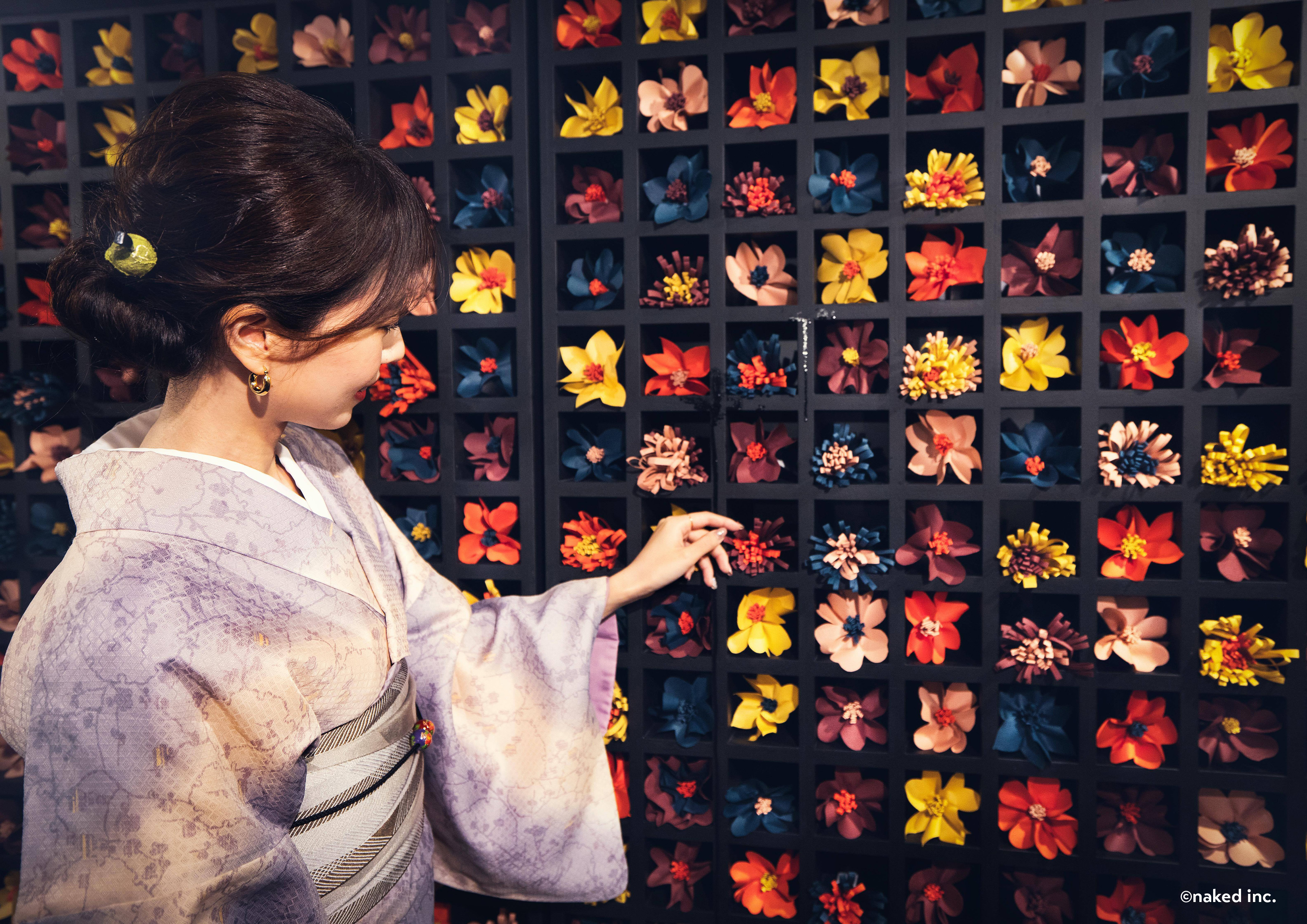会場内の出口付近に「NAKED 花みくじ®」をご用意しています。色や形の異なる花から一つを選ぶと、その花には今の自分に寄り添うメッセージが込められています。おみくじとして持ち帰ることも、会場内の枝に飾って一つの風景として花を咲かせることもできます。