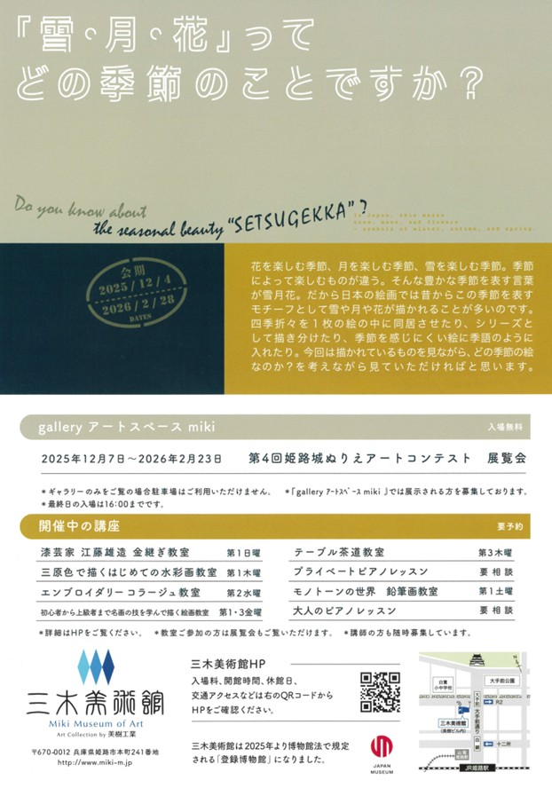 【三木美術館】「雪・月・花」ってどの季節のことですか?