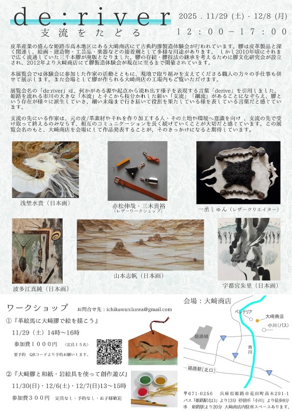 姫路 大﨑商店で紡ぐ革と膠の展覧会「de:river 交流をたどる」