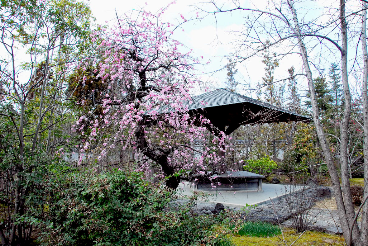 様々な品種の梅の盆栽や深紅、白など色とりどりの梅を園内各所で鑑賞できます。