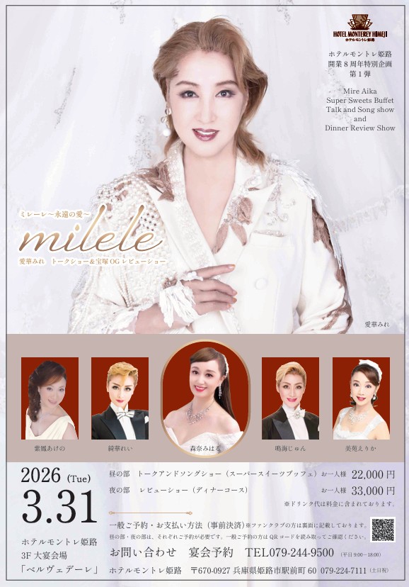 【ホテルモントレ姫路】愛華みれトークショー&宝塚OGレビューショー「milele ミレーレ~永遠の愛~」