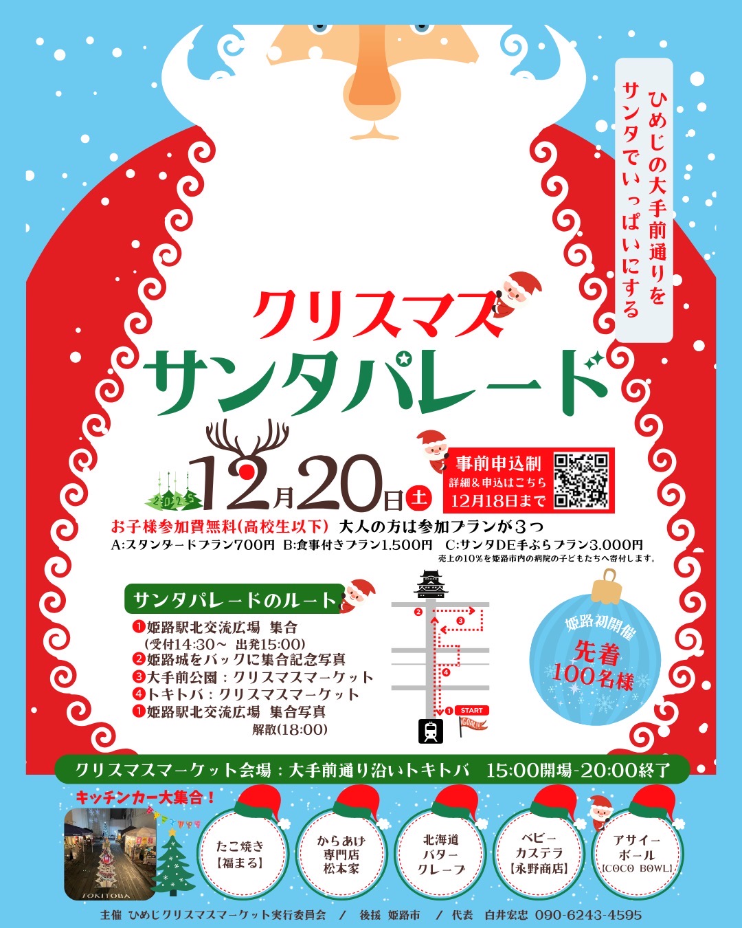 姫路の街を彩るサンタパレードがやってくる!特別なイベントを一緒に楽しみませんか?〚開催日時〛2025年12月20日(土) / 15:0...