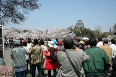例年、桜の時期、姫路城へは、観光客や花見客の方が非常に多いのですが、今年は特に、姫路城大天守保存修理工事が本格的に始まる前に、姫路城を見学しておこうとする方が、大勢来られることが予想されています。姫路城や姫路城周辺では、大変混雑な状況が起こりますので、ご了承ください。姫路城へお越しの際は、時間に余裕を持っていただき、出来るだけ公共交通機関のご利用をお願いします。