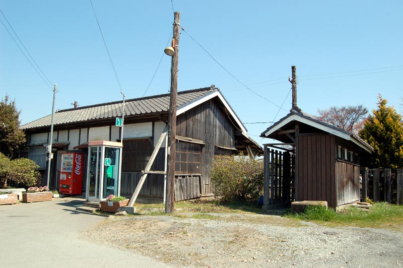 とりわけオススメなのが「法華口駅」。焼き板に白漆喰の壁を巡らせた瓦屋根の木造駅舎で、梁や屋根組が剥き出しになった待合室、板屋根を大きく張り出したホーム、駅舎の脇の汲み取り式の便所にも深い味わいがある。