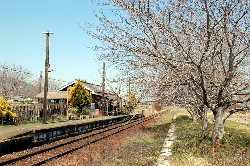 また駅舎の前と、今は使われていない土を盛っただけのホームには桜の老木が枝を伸ばし、一幅の絵となるので、春にはカメラを手にしたアマチュアカメラマンたちの姿が多く見られる。
