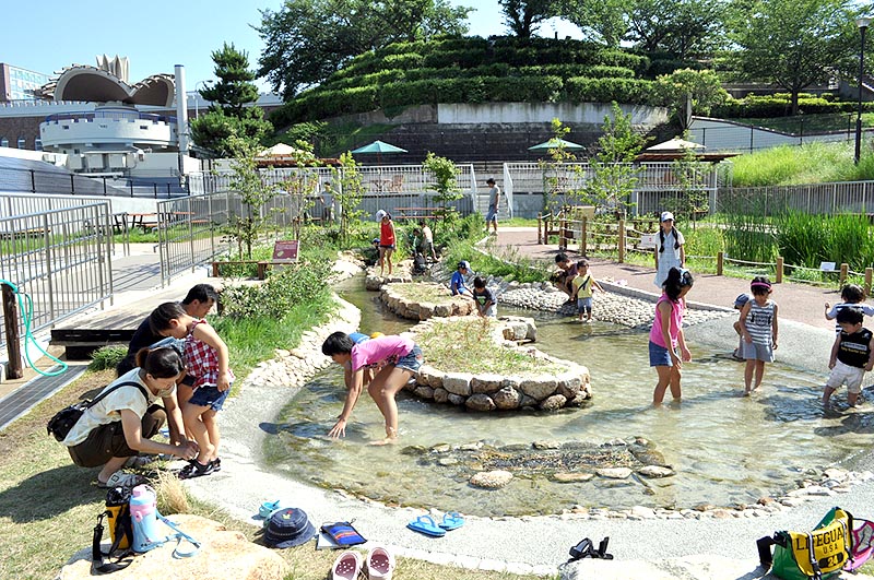 館内には、瀬戸内海の魚を主体とした「播磨灘大水槽」が新設され、播磨灘をイメージしたカキの養殖いかだ等を浮かべ、いかだの周りを群れ泳ぐ魚たちを見ることができます。新ウミガメ水槽には、ウミガメが産卵可能な広さの砂場が設けられ、産卵に挑戦されています。屋外には、子供が遊べるじゃぶじゃぶ小川や昔ながらのため池も再現されています。五感で感じる体験型展示が充実していますので、ぜひ、新しくなった「山の上の水族館」へお越し下さい。