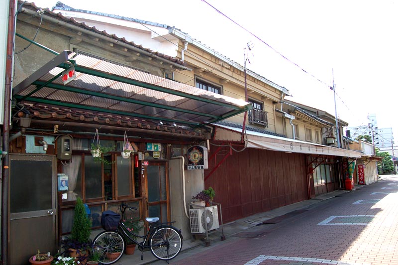 商店街に架かるアーチや街路灯などもレトロそのもので、今の我々には「コバタ」としか読めない戦前の表記が残るタバコ屋さん、「パーマ屋さん」という言葉がぴったりくるドアも窓も木枠の美容院、さらに北へかつての遊郭跡に行けば白粉の匂いが漂ってきそうな、いかにもそれらしい建物なども残り、懐かしい雰囲気を醸し出している。