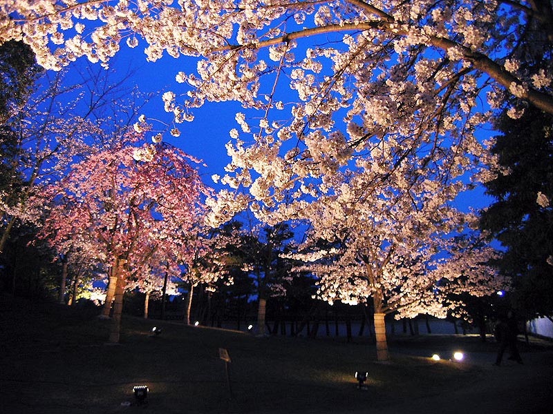 姫路城の西隣にある日本庭園が美しい好古園で、園内の桜などを日暮れとともにライトアップします。昼間とは異なった幻想的な風景をお楽しみ下さい。 |