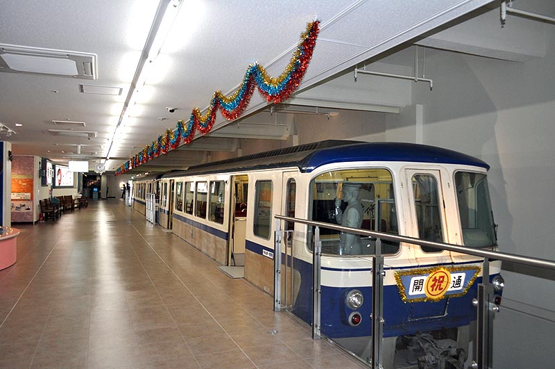 また、公園の一角に手柄山交流ステーションが設けられており、ここに昭和41年から49年まで姫路の駅前と手柄山を結んで走行していたモノレールが展示してある。車両も実際に使われていた実物で、ホームに掲げられている商店の看板なども当時を再現。レトロな雰囲気が漂い、CGなどとうまく組み合わせれば高度成長期の日本を再現できなくもないだろう。