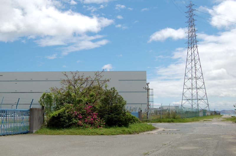 姫路市の臨海部の埋め立て地に広がる製油所の跡地。製油所は2003年に閉鎖され、約129ヘクタールもの広大な跡地のうちの約48ヘクタールにはパナソニックほかが出資した(株)IPSアルファテクノロジ姫路工場が建っている。2009年(平成21)に竣工した液晶パネルの生産を主とする工場である。跡地の一画に建つ真新しい工場はシンプルな外観で、周囲を圧するほど巨大だが、残りの大半の土地は更地である。周囲をフェンスと有刺鉄線が人の出入りを拒むように居丈高に取り囲み、中では雑草や灌木が所在なく生い茂り、高圧送電線の鉄塔が長い影を落としている。隣は一級河川・市川の河口で、海にも近く、遮るものがないせいか潮の香を含んだ風が容赦なく頬を打ち付ける。