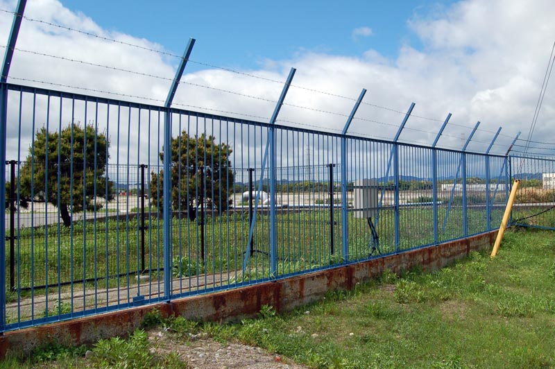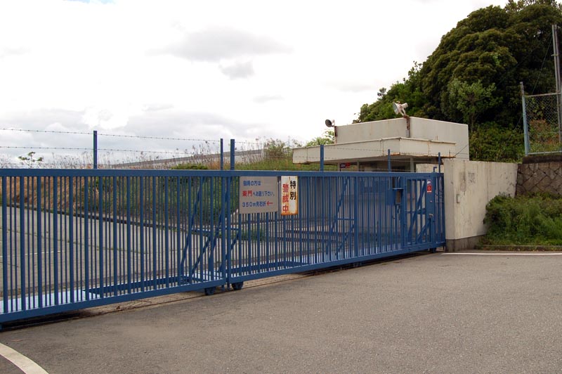 外周道路に沿って歩いても、周囲を拒絶するかのような孤高の趣は消えることがない。外部と製油所を隔てていたフェンスの上部にはすべて有刺鉄線が張り巡らされ、門に設けられた門扉は頑丈そのもので、入構者の受付や監視を行っていたと思われる詰所も重々しいコンクリート製。外部とは軽々に交わらないそんな強固な意志が込められているかのようにも思える。製油所という極めて高い安全管理が求められる施設だったせいなのだろうが、「実は昔、ここには秘密の基地がありましてね」と言われても納得してしまうほど、趣のある景色が広がる。