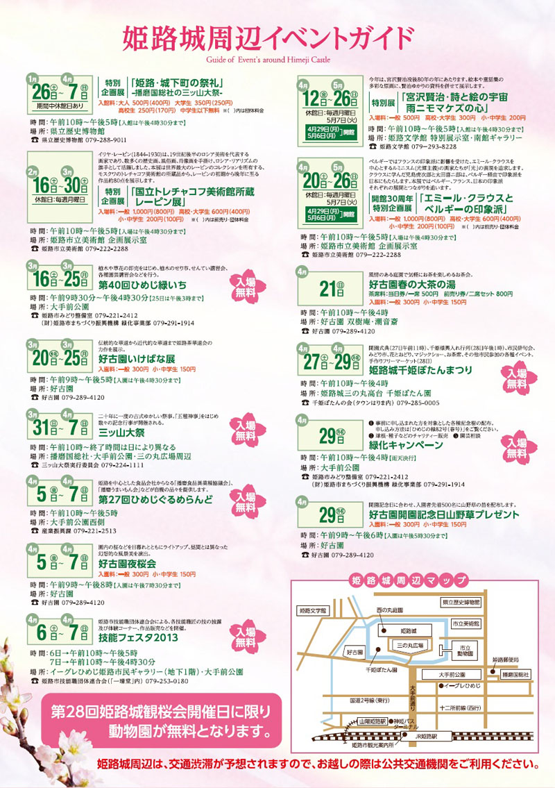 寒い季節も終わり、ようやく暖かくなってきました。さくらの時期ももうすぐです。姫路城やその周辺では、この時期に様々なイベントが行われます。ぜひ、春の姫路へお越しください。