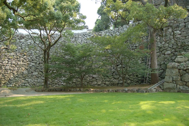 ただ本丸、二の丸、備前丸、上山里、東の帯郭や井戸郭などの主郭部分は、すでに秀吉の築城時に築かれていたのではないかと考えられており、それを最も顕著に表しているのが石垣(石塁)である。具体的には、菱の門東方土塀下の巨石積石垣や上山里下段、北腰曲輪、西北腰曲輪、乾曲輪の石垣などで、石材の大きさや積み方から見て秀吉時代の古式石垣だと考えられている。