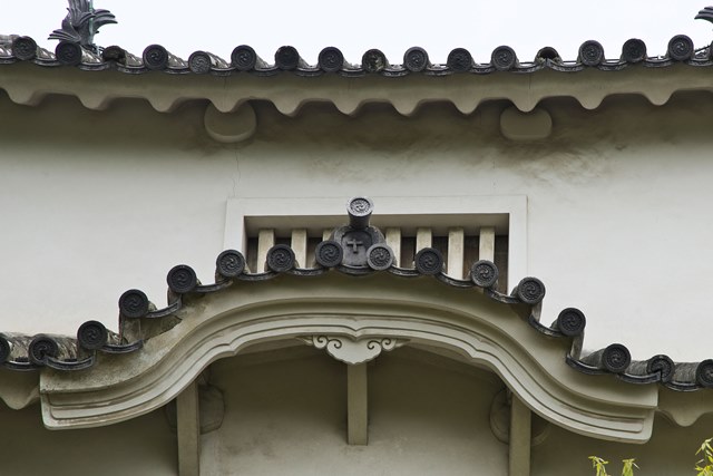 さらには「に」の門櫓西面に十文字の鬼瓦があり、キリシタンだった官兵衛ゆかりのものではないかという説もあるが、官兵衛が洗礼を受けたのは姫路城を離れた後の天正11年(1583)頃のことで、残念ながら伝説の域を出ない。