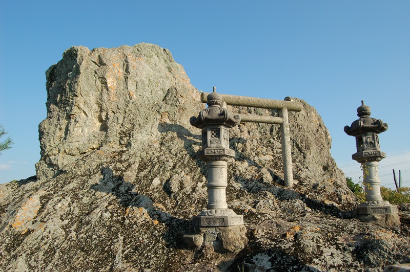 石段を登っていくと驚くほど太いしめ縄が張られた本殿が姿を見せ、背後に回ると「蛤岩」と呼ばれる霊岩が鎮座している。昔、土地の人がこの岩の上で蛤を拾い、福徳長寿の幸を得たとの伝承が残り、岩の上の凹みは四季を通じ霊水をたたえ、その水は潮の干満にあわせて満ち引きするともいわれている。確かに鳥居と玉垣に囲まれた蛤岩はどことなく神秘的で、昨今はやりのパワースポットらしい雰囲気を醸し出している。