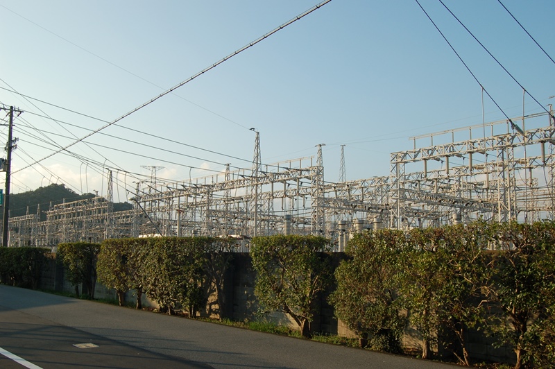 もう1つ、これは〓おまけ〓のようなものだが、蛤山の東麓にある関西電力の姫路変電所も映像的な魅力を秘めている。市街地の幹線道路から一歩奥まったところにあり、フェンスに囲まれた広い敷地の中に架空送電線、避雷線、変圧器、遮断器などの、おびただしい直線で構成された設備群が不思議な映像美を送り出しており、〓都心の異界〓じみた面白さが感じられる。まさに〓おまけ〓で、具体的にどうのこうのではないが、心に留めておきたい風景である。