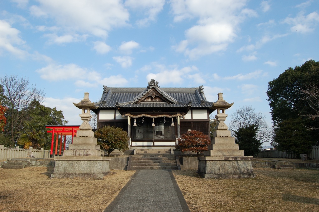 神社は天和2年(1682)に、時の姫路城主・本多忠国が姫路城の裏鬼門に当たるこの地に建立したもので、歴代城主の崇敬を集めてきたが、昭和20年7月3日の姫路空襲で社殿は全焼。現在の社殿は昭和41年に再建されたものである。従って、戦前に建立された石灯籠や石鳥居を除けば、社殿や境内に歴史の重みを感じることはできず、ロケ地として使うのには限界があるが、注目したいのが山の麓を走る列車との絡みだ。