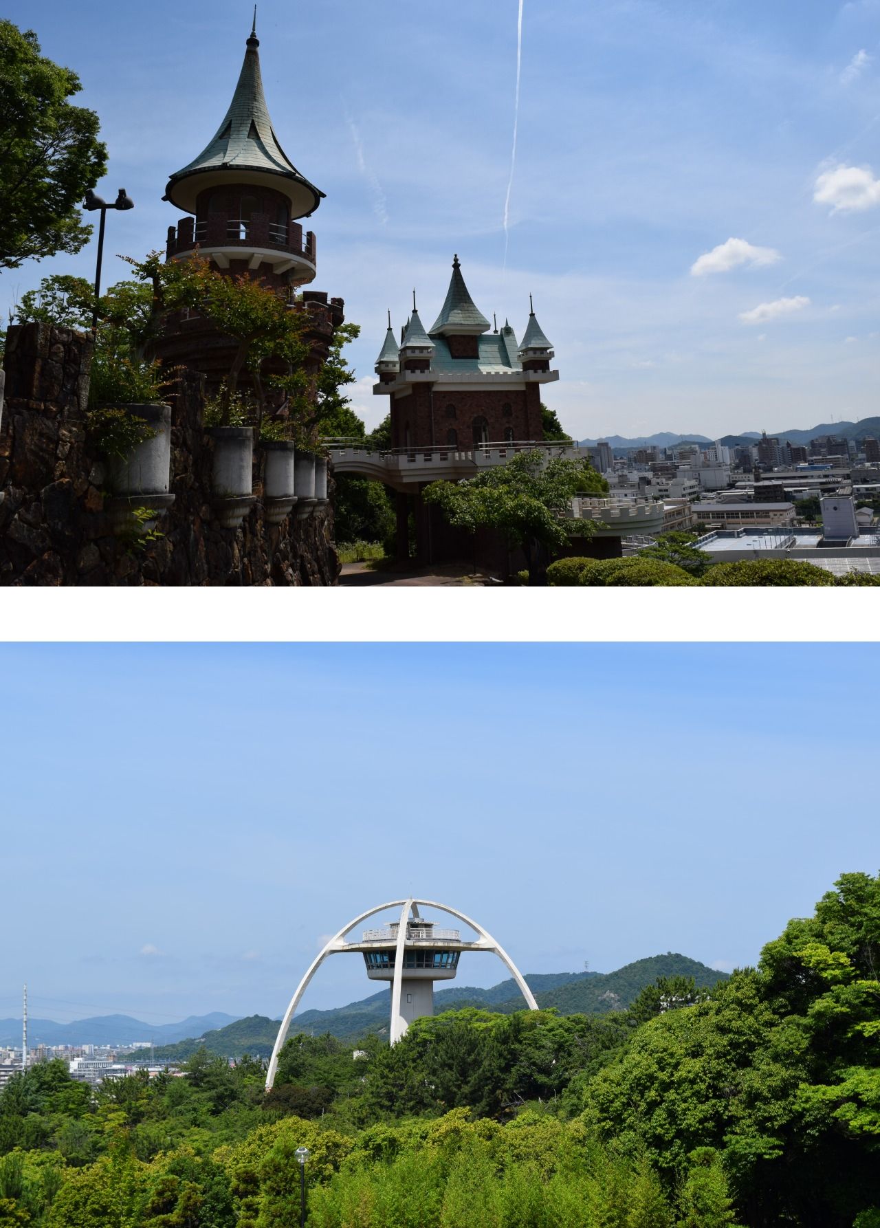 姫路市のホームページではスリラー塔を「西洋のお城風の建物」としているが、確かにそう見えなくもなく、その意味でもまさに多国籍料理ならぬ多国籍建築物。ワールドワイドに悪と戦うヒーロー&特撮ものの架空の舞台としては申し分ないだろう。
