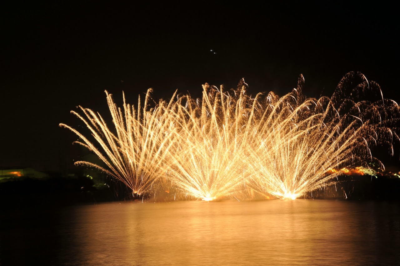 今年は40回記念の節目の年ということで、約5,000発を2箇所から打ち上げを行います。また、他ではなかなかみられない尺玉(10号玉)も打ち上げる予定です。