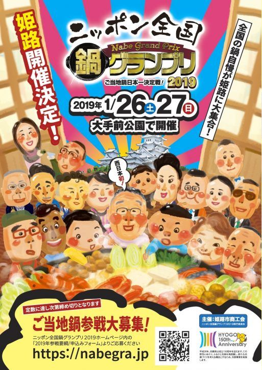 2005年から始まった鍋料理グランプリが2019年1月26日(土)〓27日(日)の二日間において初めて西日本で開催されます。世界遺産姫路城をバックに各地域自慢の熱々の美味しい鍋を食べて温まりませんか?
