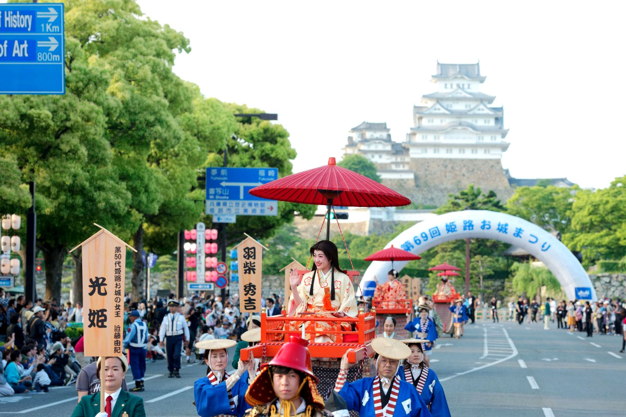 ※時代パレードではお城の女王3姫とひめじ観光大使の丘みどりさんが参加されます。