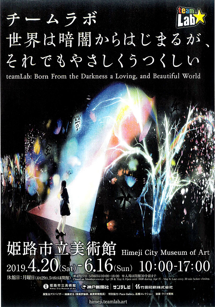 姫路市立美術館では4月20日より、アートコレクティブ「チームラボ」による展覧会『世界は暗闇からはじまるが、それでもやさしくうつくしい』が開催されています。チームラボの世界観を体感してください。