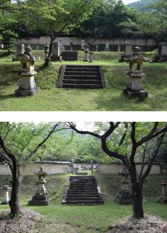 その河合道臣ら河合家の人々を祀る墓所が、仁寿山の西南麓の姫路市兼田にある。県道402号沿いに立つ道臣の顕彰碑から奥へ、狭い道を進んで行くと木立に覆われた一画があり、緩やかな階段状の坂道を登っていくと河合家墓所がある。道臣が坂田町の善導寺にあった祖父河合定恒らの遺骨を移し、一族の墓所としたもので、周りを土塀で囲み、広くきれいに整地された墓所には人工構造物も見当たらず、いかにも江戸時代の墓所という雰囲気を残している。