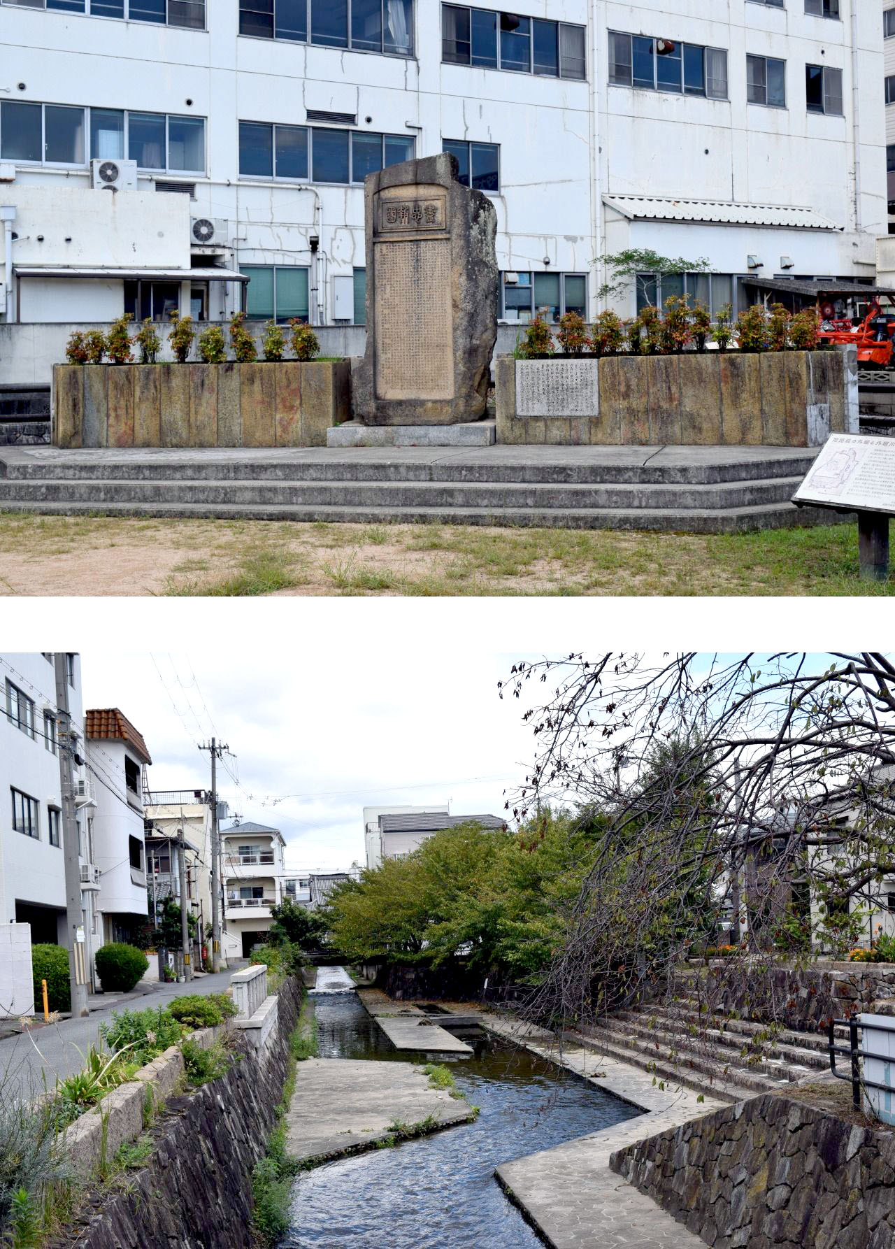 善導寺から平野町に入ると境内に池田輝政の供養塔が立つ正法寺があり、そこから南東方向に歩いていくと姫路城の外濠にぶつかるが、濠を南に下った神屋町4丁目の外濠公園に惣兵衛の顕彰碑が立っている。姫路城は内濠、中濠、外濠の三重の濠に囲まれた鉄壁の守りを誇る城だが、中濠、外濠の多くは埋め立てられており、このあたりは三重の濠の存在を実感できる数少ない場所になっている。ぜひ足を延ばしてほしい一画である。