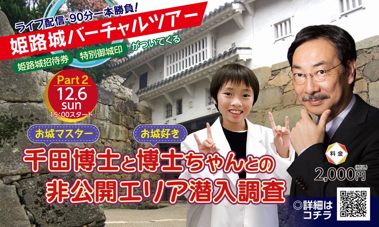 第二弾は、姫路フィルムコミッションが撮影支援したNHK「ブラタモリ」や関西テレビ「新説!所JAPAN」で姫路城を案内していただいた城郭考古学者の千田嘉博先生と、テレビ朝日系列「サンドウィッチマン&芦田愛菜の博士ちゃん」の番組で姫路城にきてくれた"お城博士ちゃん"こと栗原響大(ひびき)君が、奔放初公開!となる「ぬの門櫓一階部分」「リの二渡櫓」に潜入し、建物の構造など、見どころポイントについて、ご紹介して頂きます。