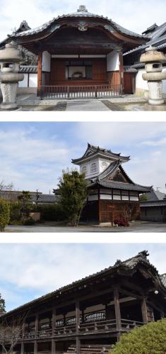 大門を抜けると本堂が待ち構えているが、面白いのがその前に目隠し塀が設けられていること。実は大門の東には姫路城下と飾磨津を結ぶ飾磨街道が通っており、門前を通る通行人は下馬するなどして礼拝するのが慣例となっていた。ところがこれでは通行量の多いときには交通渋滞を引き起こす。で、それを回避するために視線を遮る目隠し塀が設けられたというのだが、本徳寺の往時の威光が偲ばれる。