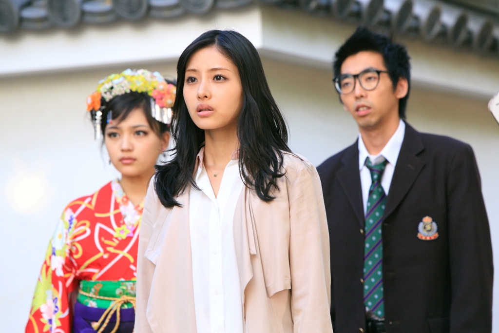 幕末の江戸にタイムスリップした高校教師・未香子とその教え子たち。彼らを保護しつつも西郷隆盛との無益な戦いを避けるために奔走する勝海舟を描いた作品です。勝海舟の屋敷として好古園の御屋門の前で撮影が行われ、主演の玉木宏さんや石原さとみさんをはじめ、柄本時生さん、川口春奈さんが撮影に参加しました。