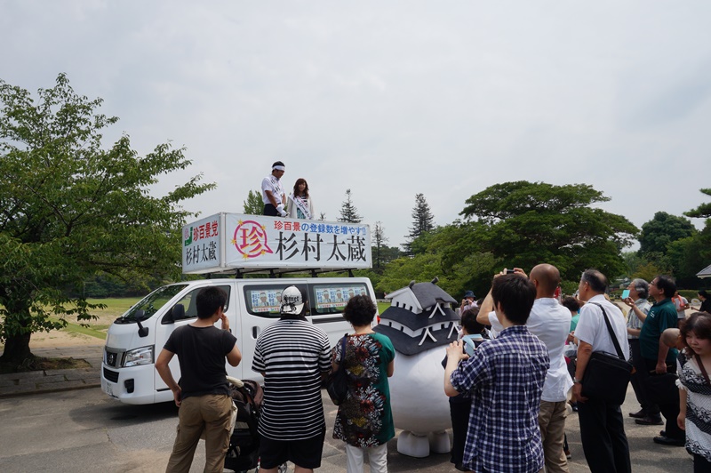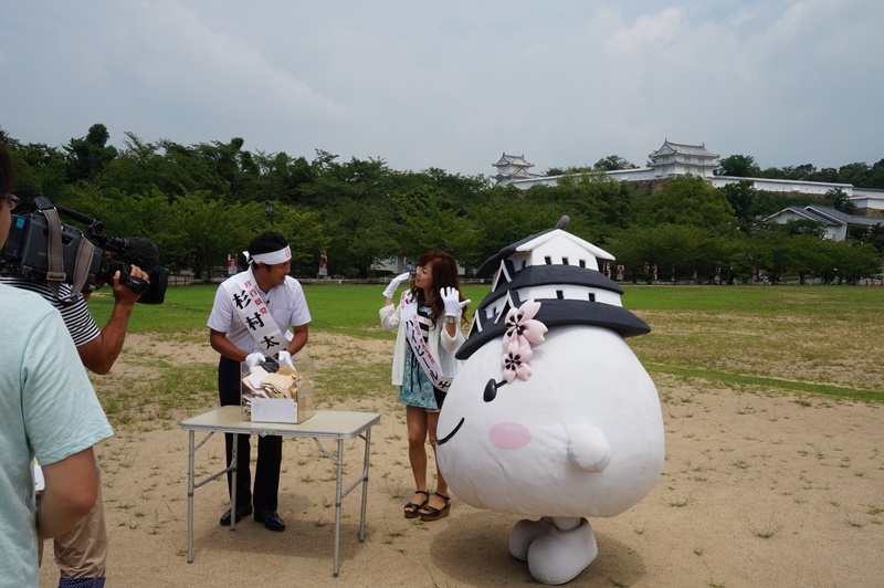 番組内の「杉村太蔵党」という全国各地の珍百景を訪ねるコーナーで、兵庫県で珍百景を撮影。そこで、コーナー内の演出で杉村さんが姫路城三の丸広 場にて珍百景党を扮して演説を行う様子を撮影しました。