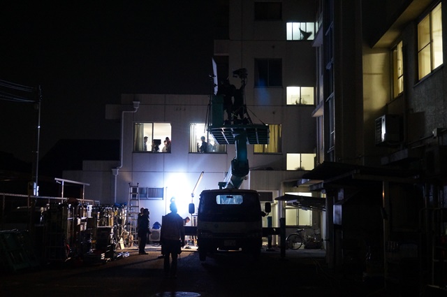 姫路では飾磨にある山陽内科クリニックと中央卸売市場東側の山陽電車線路沿いのアパートで撮影しました。姫路フィルムコミッションとしても、今回のロケーションでの撮影は初!病院では深夜1時まで撮影を行い、多くの方にご協力を頂きました。