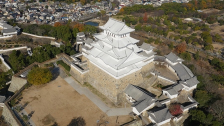 空からの姫路城はより一層白く、美しく、大変魅力的。