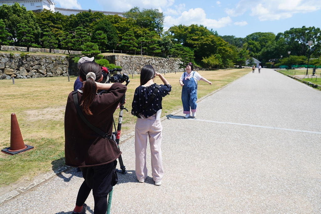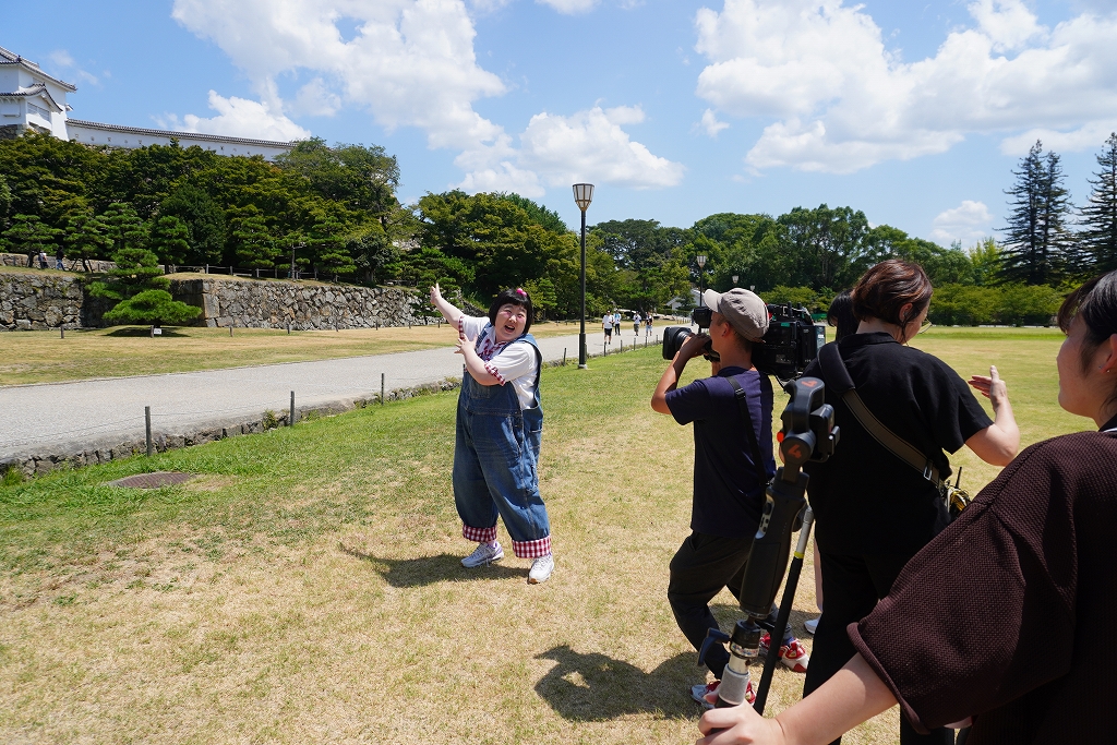 今回は、酒井 藍さんが田舎暮らしに良い物件を紹介するコーナー「あいLOVE田舎暮らし」にて、姫路城の三の丸広場でオープニング撮影をしていただきました。