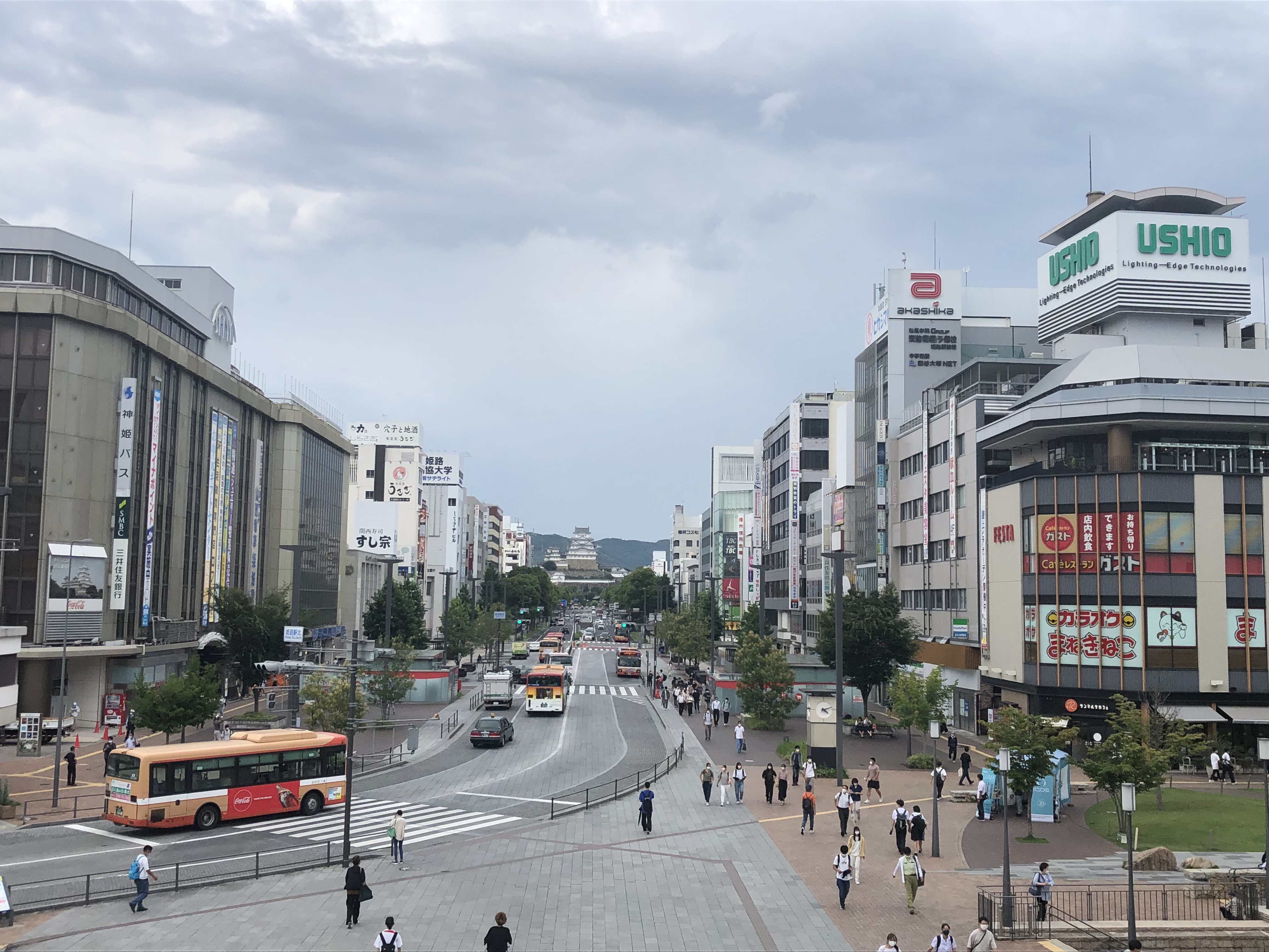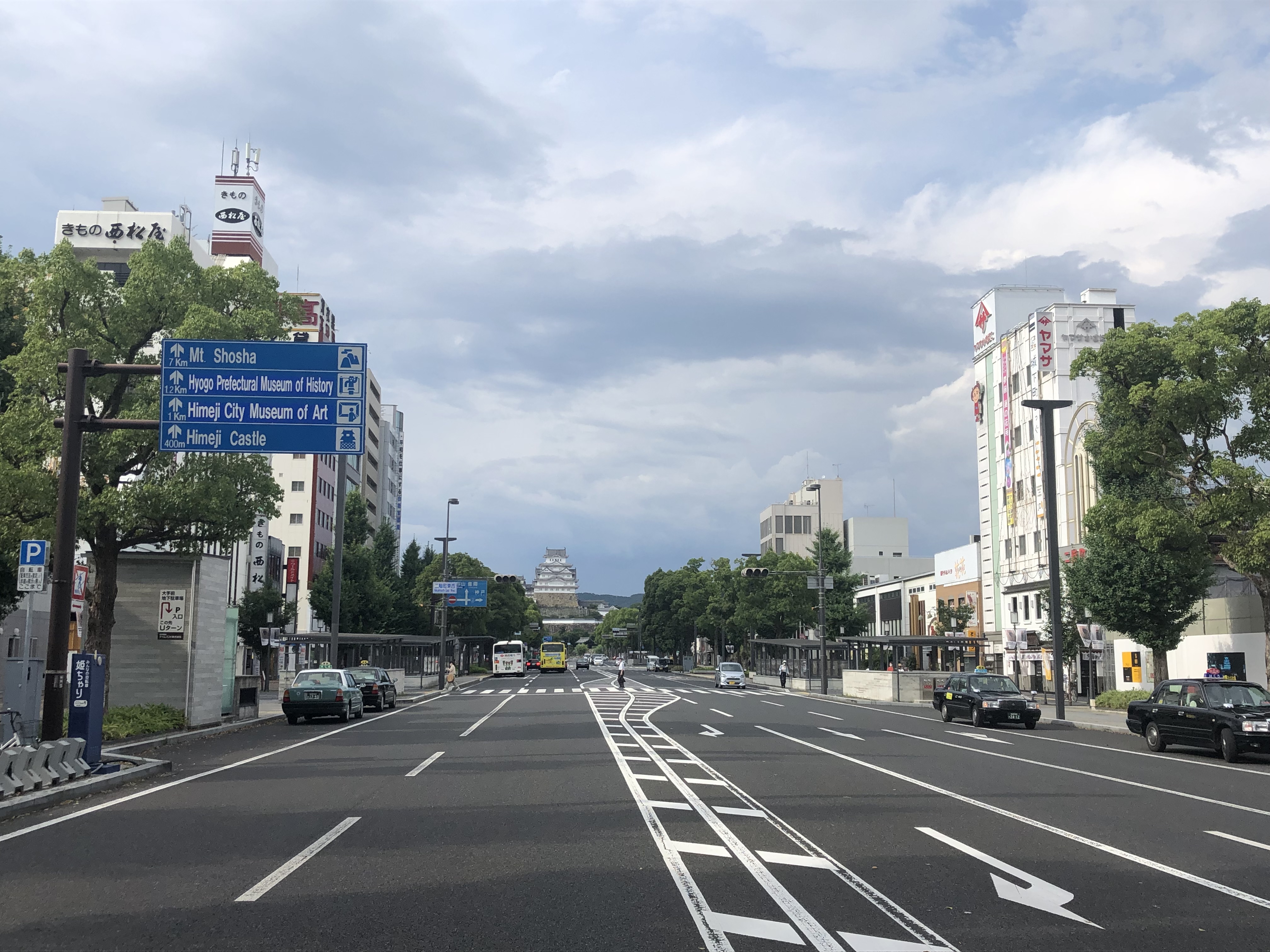 コメント大手前通りは姫路駅北口から世界文化遺産・国宝姫路城を真正面に望めるメインストリートである。 全長約840m・幅員50mの道路で、日本の道100選の一つに選ばれている。