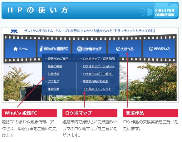 姫路フィルムコミッション・ホームページをリニューアルしました。新しく追加された機能や見やすくなった箇所を紹介します。