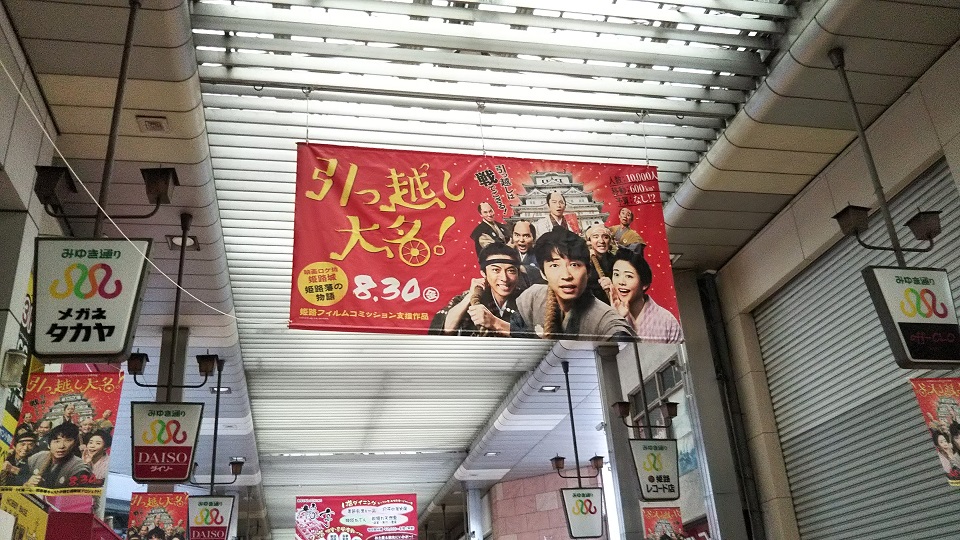<姫路フィルムコミッション支援作品・映画「引っ越し大名!」PR企画!>駅前と姫路城を結ぶ商店街にて、映画「引っ越し大名!」の