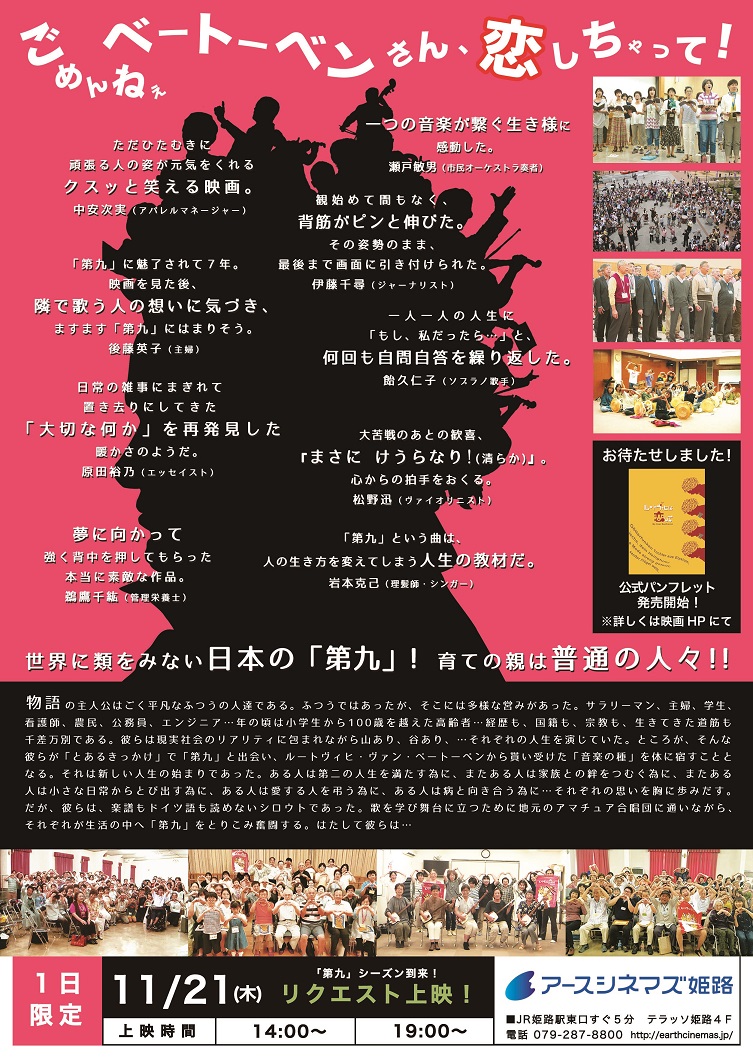 姫路フィルムコミッション支援作品・映画「ルートヴィヒに恋して」の1日限りの特別アンコール上映が決定致しました!ベートーベンの第九をテーマに展開していく人情ドキュメンタリー作品!