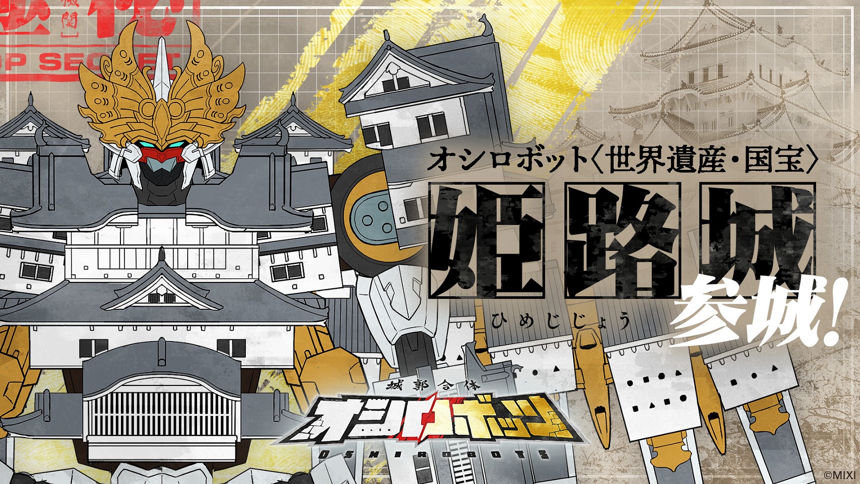 世界遺産・国宝「姫路城」がロボット化!!MIXI_ANIMEオリジナルコンテンツ『城郭合体オシロボッツ』にて、新オシロボットとして「姫路城」が参城することが決定しました。