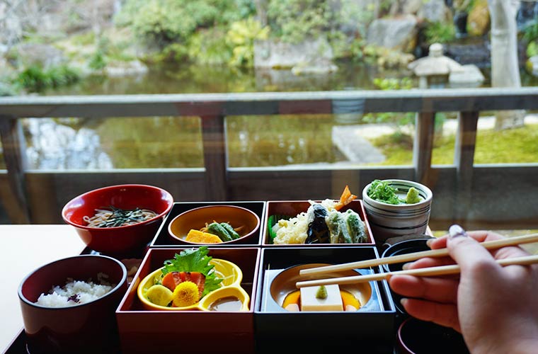 好古園に入って徒歩2分ほど歩いたところにある「レストラン活水軒」では、姫路の食材を使った和食料理が味わえます。