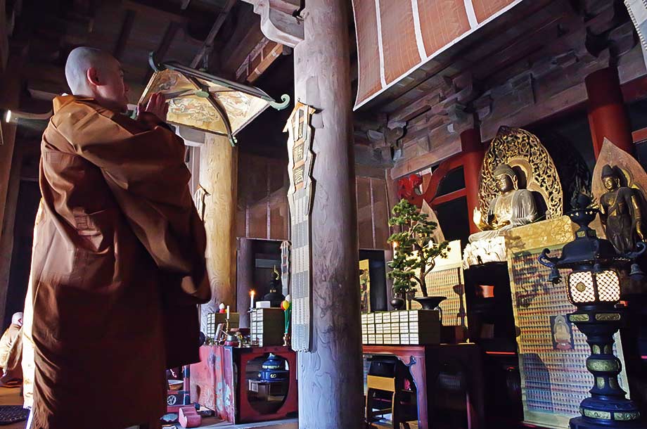 自分を見つめる時間が欲しい人におすすめしたいのが坐禅。圓教寺では常行堂で毎月1回、無料の坐禅会を行っています。背筋を伸ばし、薄暗い堂内で阿弥陀如来像と向き合って坐禅。慌ただしい日常の中で、本来の自分と向き合う貴重な時間を作ってみては。事前申し込みは不要。