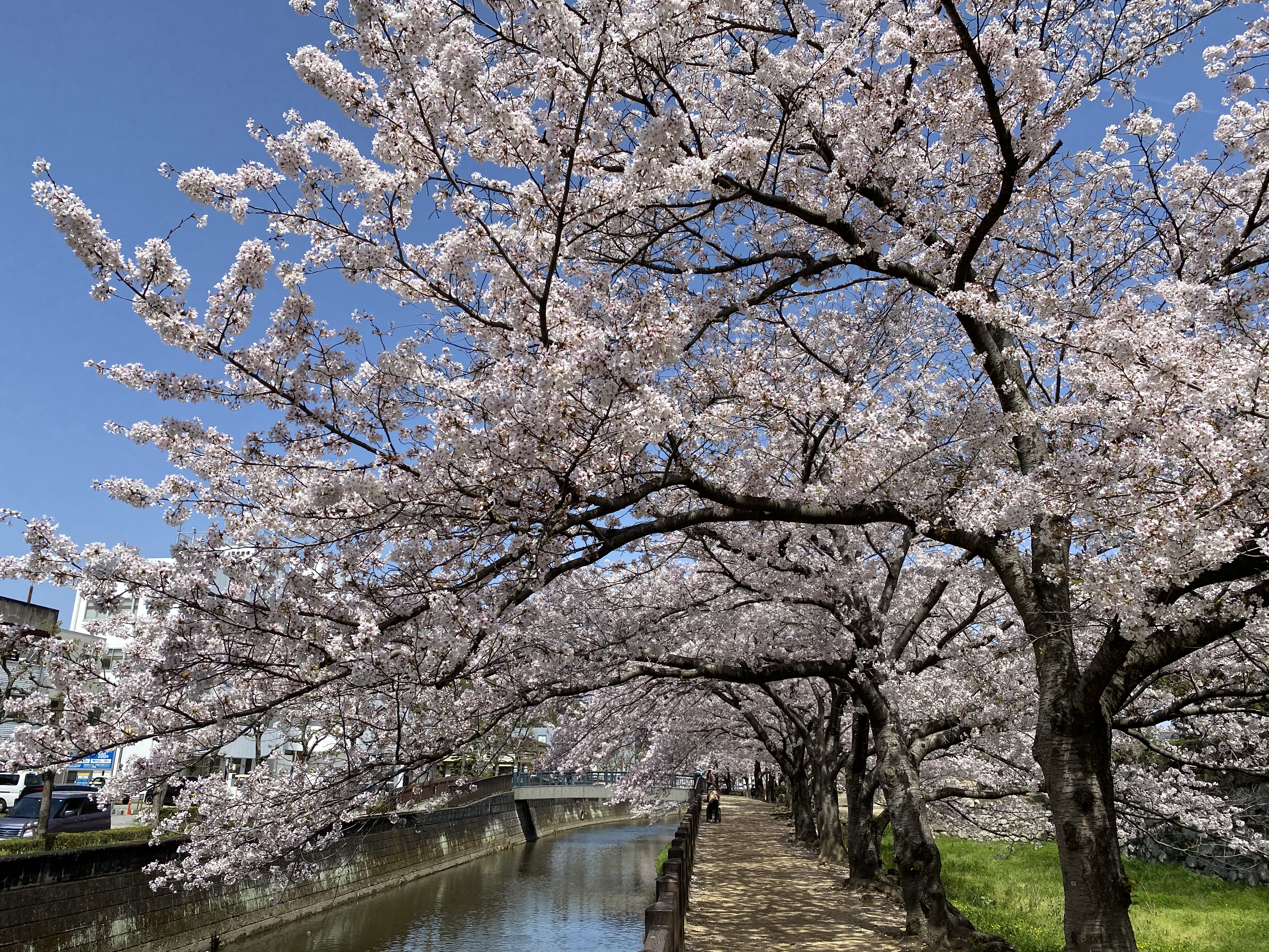 中濠と船場川との間をゆく散策の路。車門跡のあたりは、桜のころ、とくに美しい。