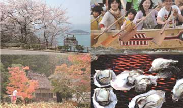 梅の花がほのかに香る「綾部山梅林」、海水浴客で賑わう瀬戸内ならではの島々や遠浅の海岸、銀色のススキが輝く「砥峰高原」、幻想的な瀑氷が見られることもある「飛龍の滝」など、四季折々、季節ごとに移りゆく美しい景色をお楽しみください。