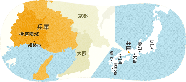 古くから兵庫県の南西部エリア(神戸の一部〜岡山県境まで)を「はりま(播磨)」と呼びます。7世紀初頭編纂の日本最古とされる地誌「播磨風土記」にもその名が示されているとおり、この地では悠久の古代から人々の生活と文化が息づいています。