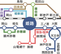 - 1. 阪神高速3号神戸線 ⇒ 第二神明道路 ⇒ 加古川バイパス ⇒ 姫路バイパス ⇒ 姫路南ランプ